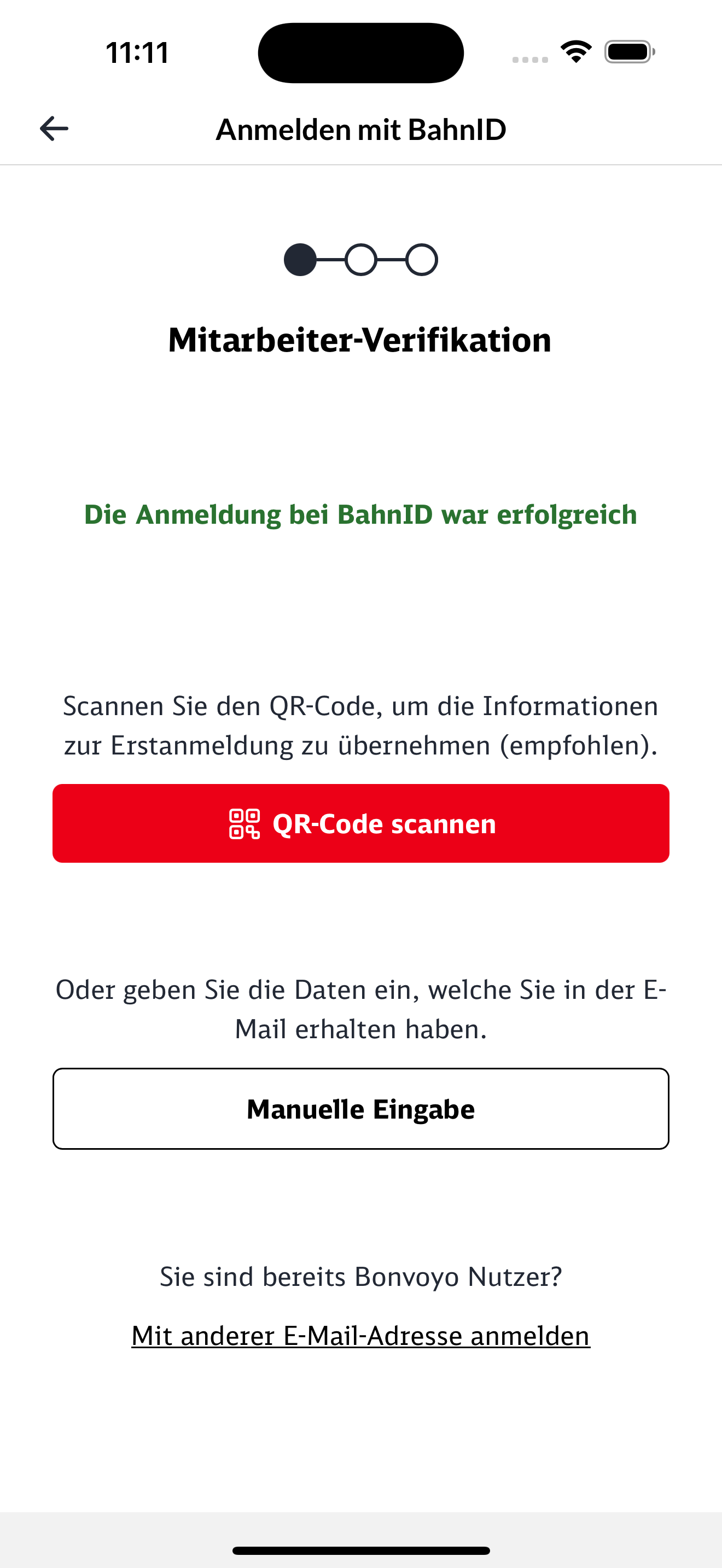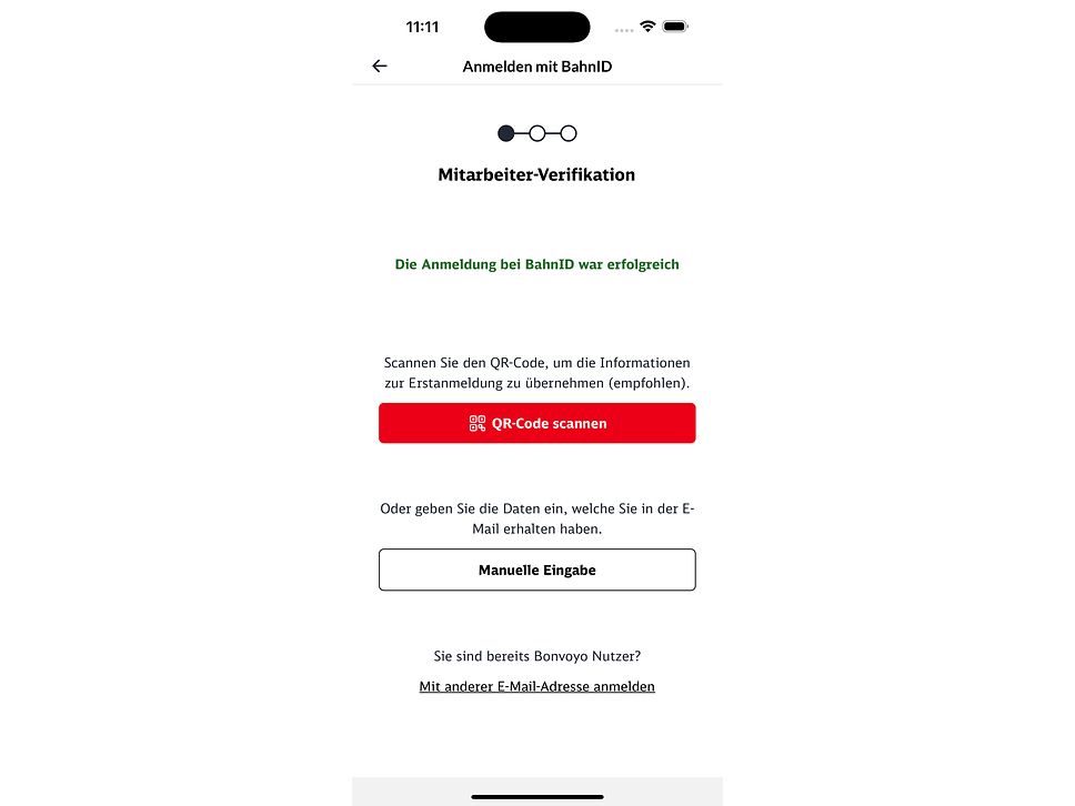 Wenn Sie diesen Screen im Bestellprozess sehen, sind sie mit ihrem bahn.de Kundenkonto angemeldet und haben für Bonvoyo ein Kundenkonto, was sich von Ihrem bahn.de Kundenkonto unterscheidet. Das sorgt dafür, dass sie das Ticket nicht über Bonvoyo kaufen können.